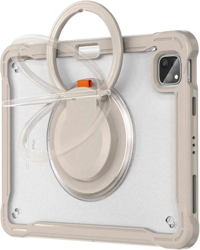 Constructed from wear-resistant TPU bumper and environmentally friendly transparent plastic, this case is not only durable but also allows the beauty of your iPad to shine through. The 360deg rotatable folding handle grip design provides a secure and comfortable grip while also serving as a versatile carrying solution, making it perfect for students, professionals, and anyone on the move.