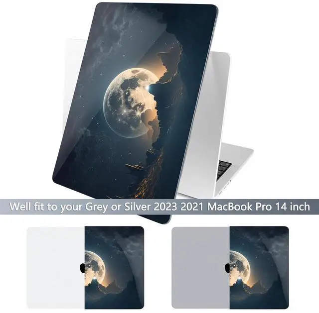 Batianda for New MacBook Pro 14 inch Case 2024 M4 2023 2021 Release with M3 M2 M1 Pro/Max Chip,Creative Series Designed Clear Hard Shell with Keyboard Cover & Screen Protector, Moon in Sky