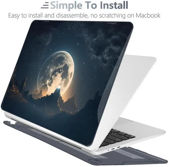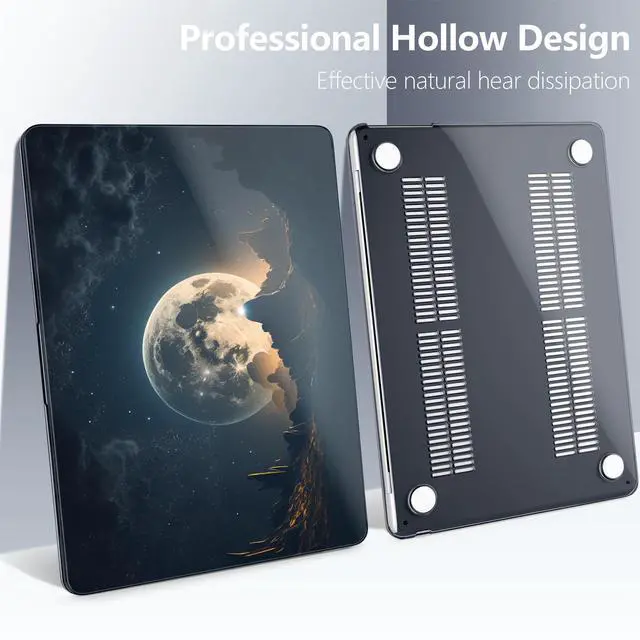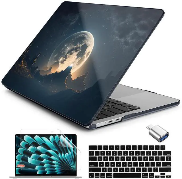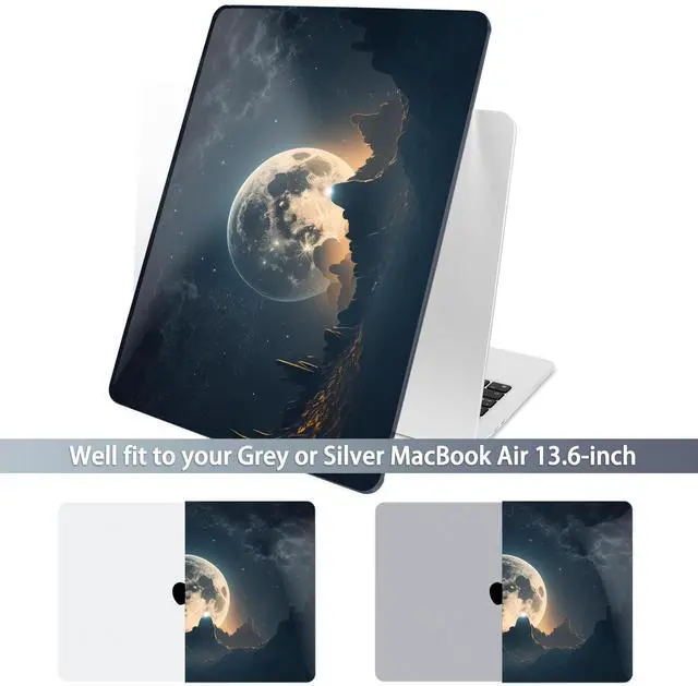 Batianda Case for New MacBook Air 13 inch 2025 M4 2024 2022 Model A3240 A3113 M3 A2681 M2, Designed Protective Hardshell Keyboard Cover & Screen Protector and USB-C Adapter, Moon in Sky