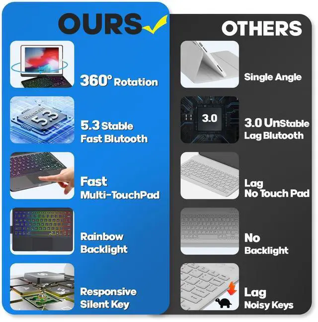 [(Multiple Viewing Angles)] - iPad keyboard case 9th generation with 360 swivel & 180 flip case, your iPad screen will have multiple viewing angles. Easily adjusts to whatever comfortable angle suits you best. You can display your work presentation, watch your favorite show or read a new book. It's also a great helper to do homework. Practical and lightweight to carry