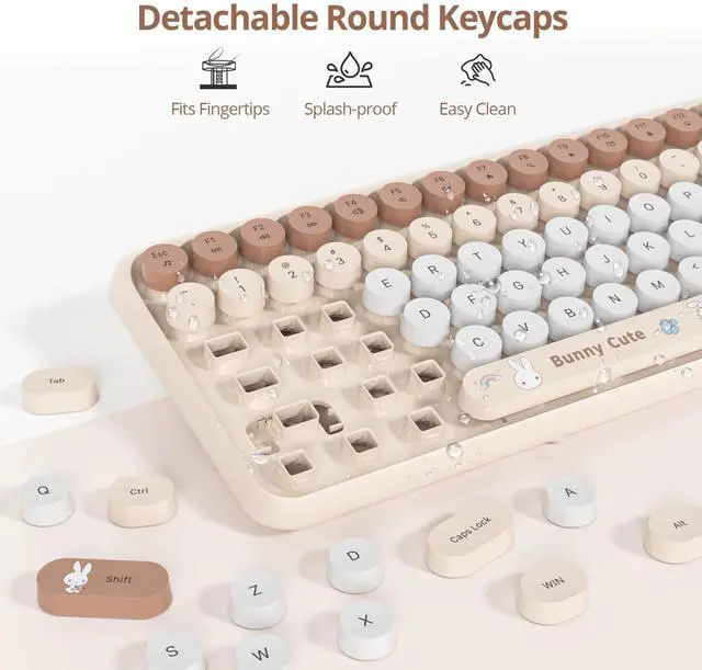 Retro Round Keycaps and Typewriter Design: This cute keyboard and mouse wireless not only looks great but also offers a satisfying tactile feedback, reminiscent of classic typewriters. The combination of modern technology and vintage charm makes it a perfect addition to any desk setup.