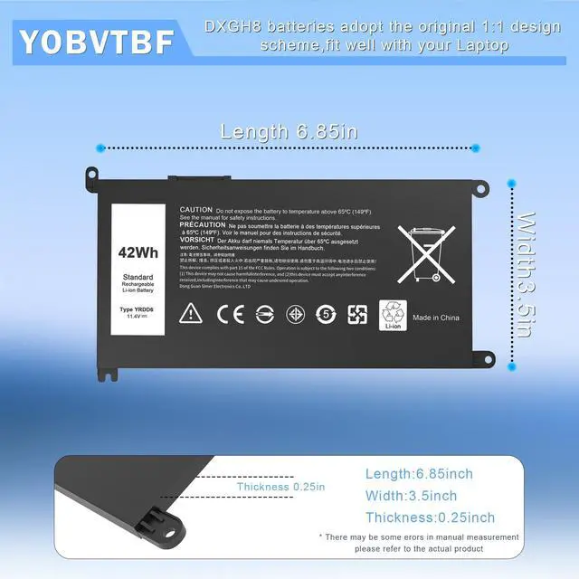 [(Specification)] Type: Lithium polymer Voltage: 11.4V Capacity:42Wh; Cells:3-cell; Color: Black,What you get : 1 * YRDD6 Laptop Battery + 1 * User Manual + 2 * Free Screwdrivers for easy installation.