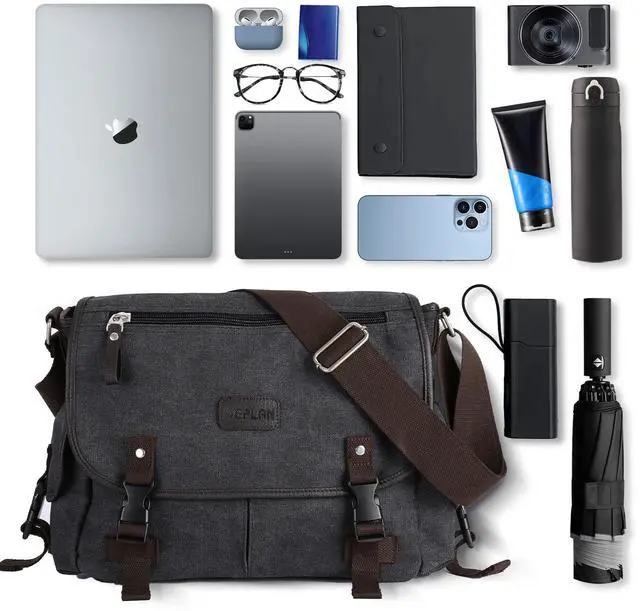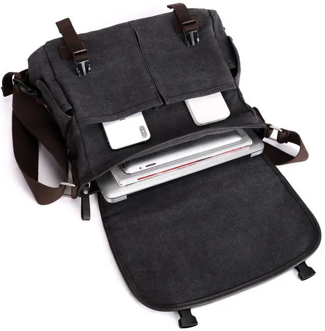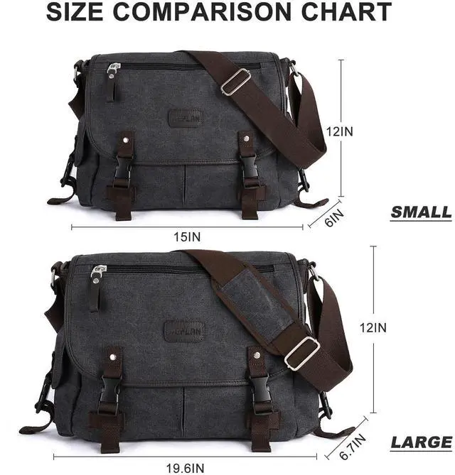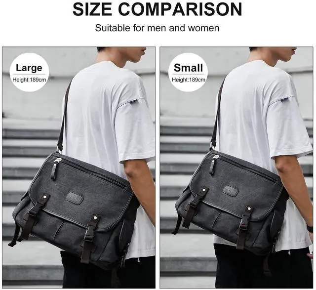 Messenger Bag for Men, Unisex Canvas Shoulder Bag, Classic Vintage Military Messenger Bags for women, satchel Bag, Crossbody Bookbag, Black