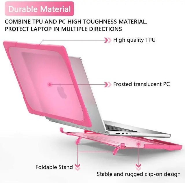 Engineered shock-absorbent beveled ridges design TPU bumper heavy duty hard shell, it can absorb the impact of accidental drops and bumps, minimizing the risk of damage to your laptop,provides full protection for your laptop against accidental scuffs, drops, and scratches,keeping your MacBook Pro looking new and sleek