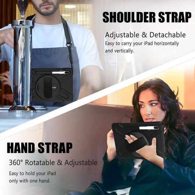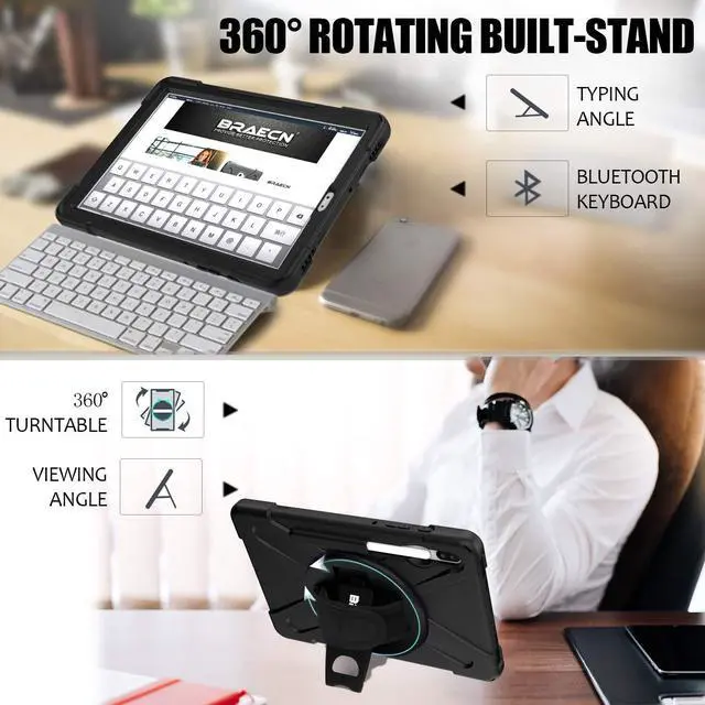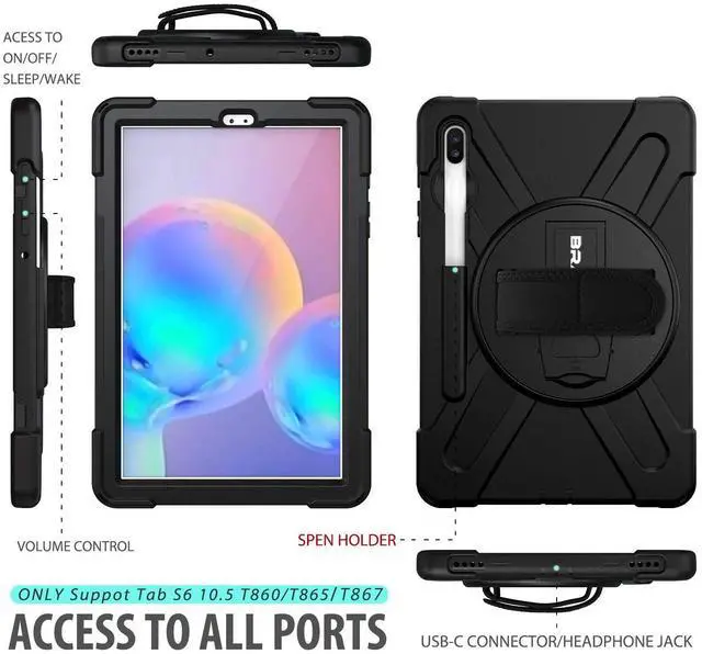 360 Degree Swivel Stand & Hand Strap: Located on the back of Galaxy Tab S6 heavy duty cases,built-in 360 degree rotating kickstand and adjustable handle hand strap provides a more flexible and convenient way to use your tablet during work, study or journey, ideal for students,teachers,engineers,cashiers and waiters,etc.