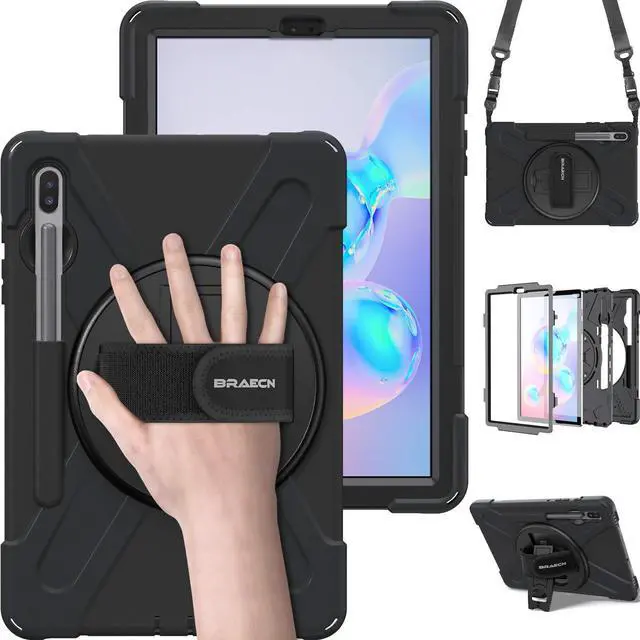 BRAECN for Galaxy Tab S6 Case, [Support S Pen Wireless Charging] Heavy Duty Shockproof Case with Pen Holder, Hand Strap, Shoulder Strap, Kickstand for Galaxy Tab S6 10.5 2019 SM-T860/T865/T867-Black