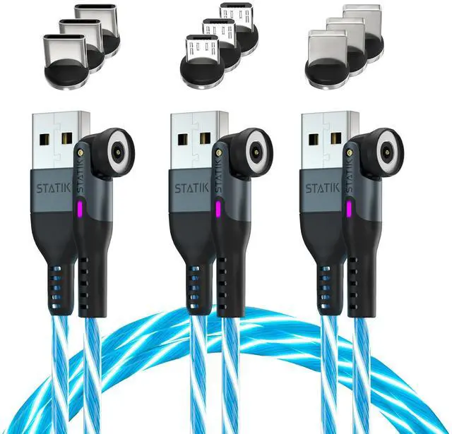 Statik GloBright 360 Magnetic Charging Cable, Light Up Charging Cable, Magnetic USB C Charging Cable, LED Charging Cable, Magnetic Charger Cable, Glowing Light Up Phone Charger Cord 3FT 3-Pack