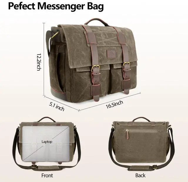 Water-resistant and Durable---Our messenger bag is made of high-density heavyweight canvas and matte leather with a waxing process for great durability and excellent water resistance, as well as smoother zippers and reinforced stitching to make damage impossible