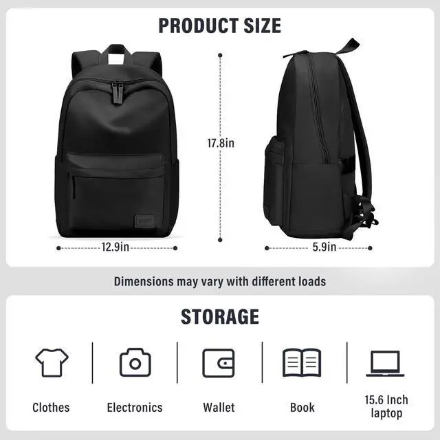 Material and Size: HOMIEE casual backpack is made of high-quality waterproof and durable nylon fabric with a stylish and classic appearance. The backpack measures 17.3*12.6*7.2 inches, making it easy to organize all your personal belongings. This stylish backpack can be a great companion for college, travel, business, daily use and outdoor activities.