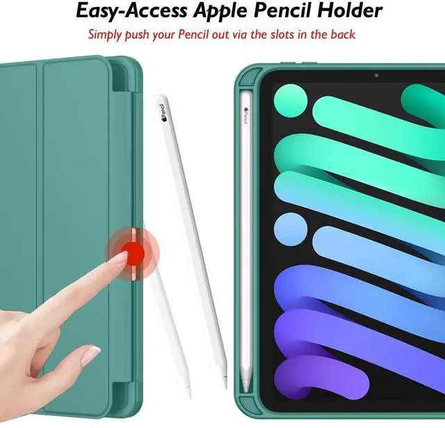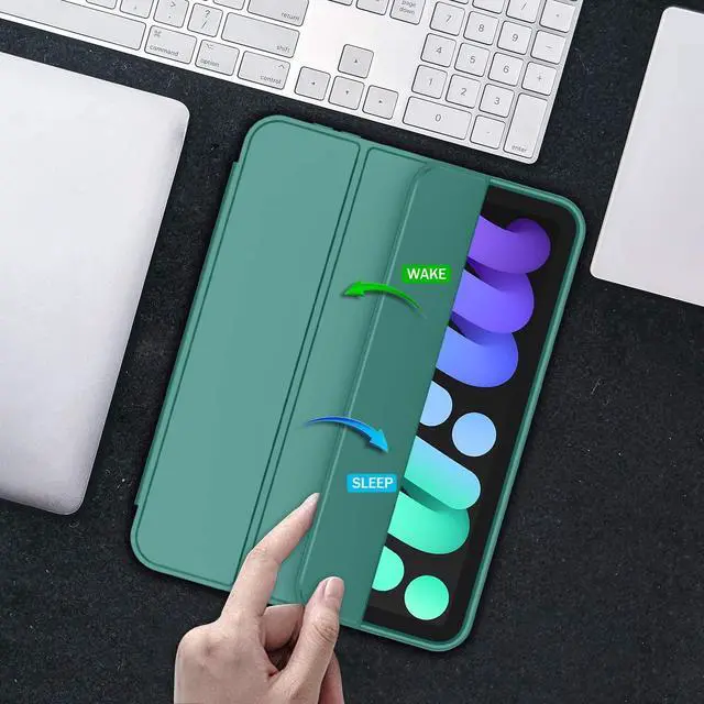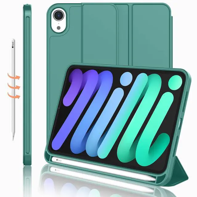 iMieet iPad Mini 7 Case 2024 (A17 Pro), iPad Mini 6 Case ( 8.3 -Inch, 2021 Model), iPad Mini 7th/6th Generation Case with Pencil Holder, Trifold Stand Smart Case with Soft TPU Back, Forest Green