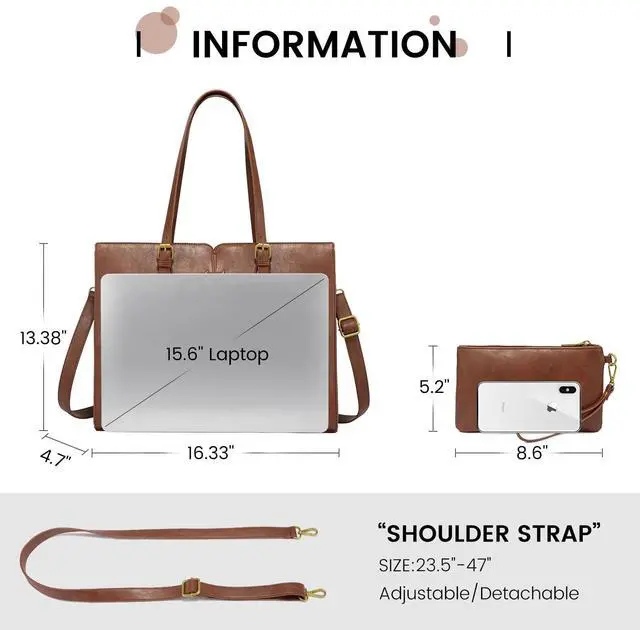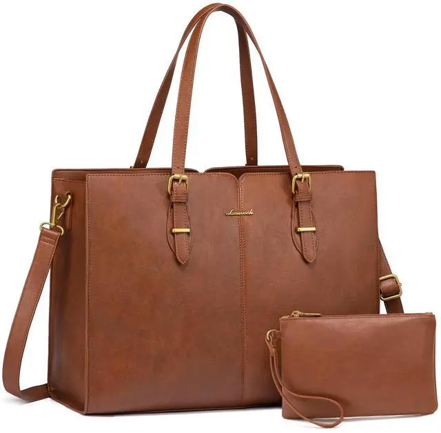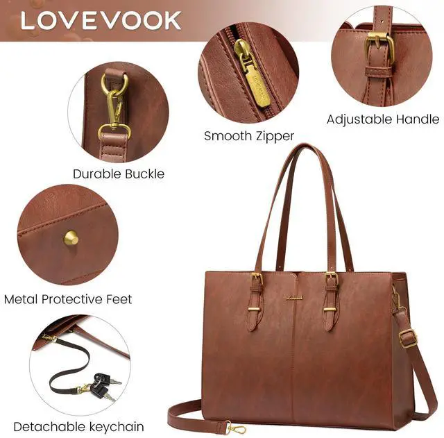 [(Elegant & Durable Womens Laptop Bag)] :LOVEVOOK tote bag for women is made of prime soft PU leather and polyester lining,offers comfortable and water-repellent advantage, with antique gold-toned hardware that conveys a vintage chic fashion look and feel. Built-in moisture repellent deodorant, so that you away from strong leather smell of trouble ,In addition,metal feet base protects your bag from damage.