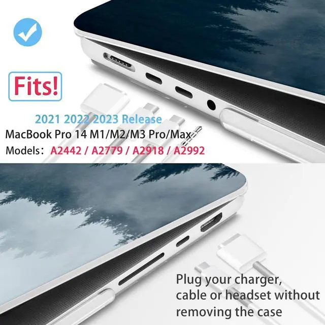 Mektron's Case Texture and Design:-For M4 A3112 A3401 A3185 /M3 A2918 A2992 /M2 A2779 /M1 A2442 Macbook Pro 14-inch Case made of high-quality PC plastic, soft to touch, anti-fingerprint, transparent (logo visible) hard shell, lightweight, perfect for your computer, and protects your Laptop. Two pieces snap on design and variety of Patterns/Individual customization, easy to install and take off. It allows full access to all ports, fully vented for safe heat disbursement