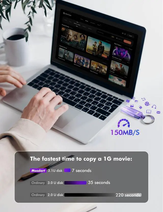 Blazing-fast data transfer: Say goodbye to long wait times! Our USB C 3.1 thumb drive boasts lightning-fast data transfer speeds up to 150MB/S, allowing you to transfer files in just seconds