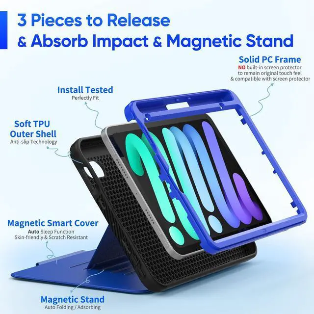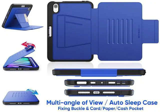 SEYMAC stock Case for iPad mini 7 (A17 Pro) / Mini 6 8.3 '', Strong Magnetic Auto Sleep Shockproof Case with Absorbing Multi-Angles Stand, Pen Holder, Card Slot, Blue