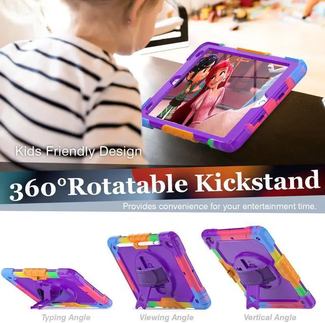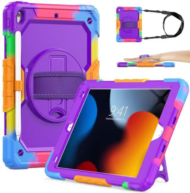 Portable Shoulder Strap & Soft Strap & 360degRotating Stand: ipad 9th generation case provides the protection and convenience when you play or work with iPad. Portable shoulder strap makes using ipad 9th/8th/7th generation case easily when hanging it anywhere at home or office. 360 degrees rotating kickstand provides different triangle watching. Soft strap makes it easily to use your ipad especially for outdoor working,travelling, gaming with kids