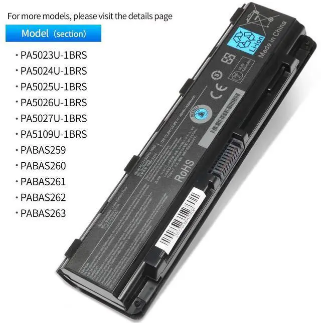 New PA5024U-1BRS Laptop Battery Compatible with Toshiba Satellite C55 C55-A C55T C55DT C55D C855 C855D L855 L875 P855 P875 S855 S875 Series Battery PA5109U-1BRS PA5026U-1BRS -12 Months Assurance