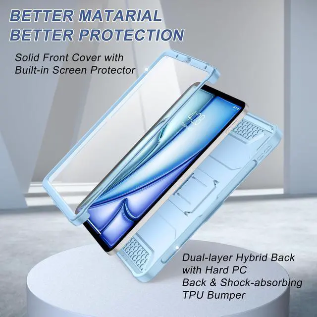 [(Rugged Armor Shockproof Protection)] Multi-layered hard PC back and flexible TPU bumper provide your iPad Air 11 and iPad Air 5/4 strong protection against drops,bumps, and impacts, also easy to install