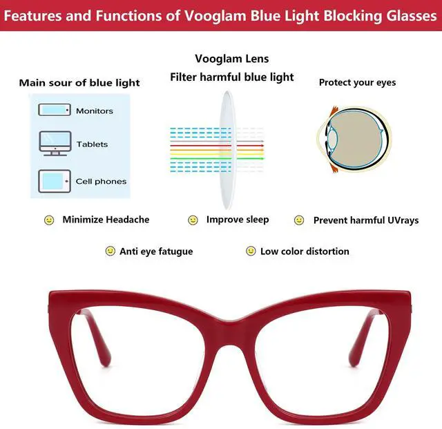 > Vooglam glasses are specially designed to filter out harmful blue light.