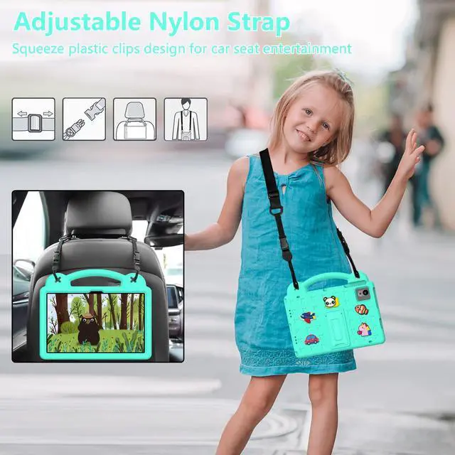 Kickstand & Handle: Build with foldable kickstand and handle, the stand could hold the tablet steadly in viewing/typing angle, and the handle is comvenient for kids to hold in small hands and sto carry