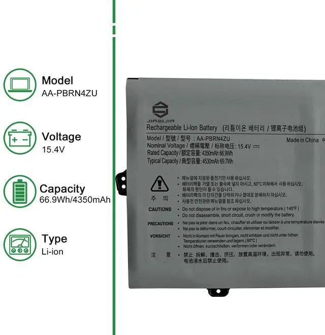 Model: AA-PBRN4ZU // Voltage: 15.4V // Capacity: 66.9Wh 4350mAh // Color: Black // Type: Plug & Play Li-ion Battery.