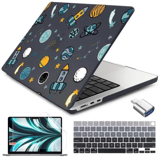Batianda Case for New MacBook Air 13.6 inch 2025 M4 2024 2022 Release Model A3240 A3113 M3 A2681 M2, Designed Protective Hardshell Keyboard Cover and USB-C OTG Adapter, Cartoon Spaceship