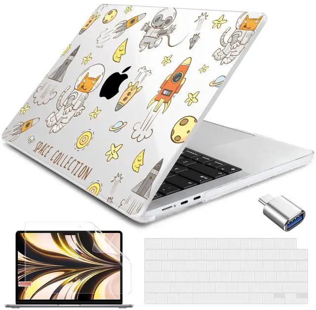 Batianda Case for New MacBook Air 13.6 inch 2025 M4 2024 2022 Release Model A3240 A3113 M3 A2681 M2, Designed Protective Hardshell Keyboard Cover and USB-C OTG Adapter, Astronaut cat
