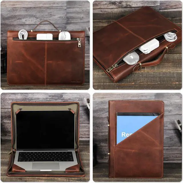 [(Vintage Design, Modern Utility)] This handmade craft combines a minimalist vintage design with practicality. Sized at 14.4" x 10.2" x 1.2", it's perfect for compatible with 14.2"/13.6" MacBook and other PC. Offering protection without sacrificing portability!