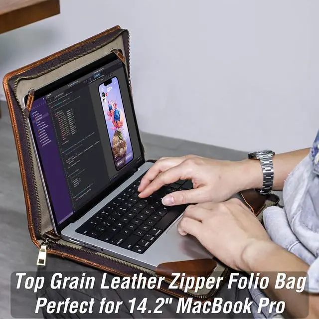[(Elegant Top Grain Leather)] Our Laptop Folio Cases are crafted from premium top grain leather, known as Chamois Leather, this craft boasts a smooth texture and a refined appearance. Resistant to scratches, it ages beautifully, enhancing its elegance over time!