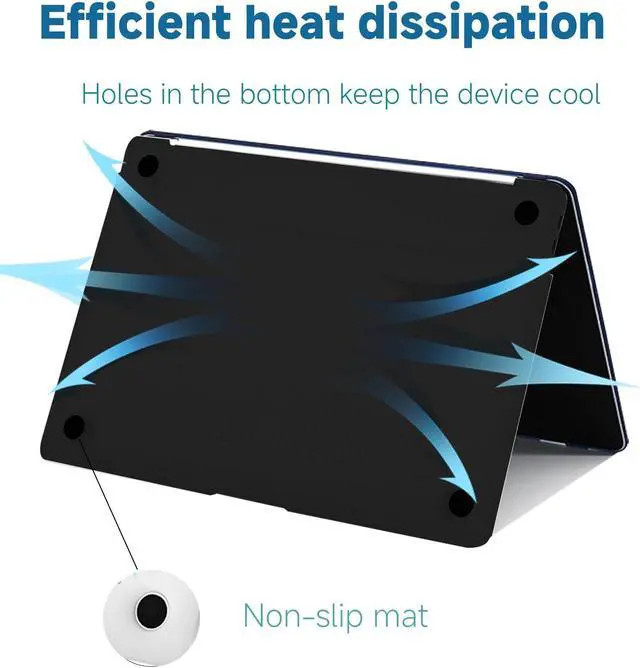 [Ease of Use]: The concealed clasp design ensures a secure fit of the protective case on your laptop, preventing any risk of detachment. The hollow design on the bottom protective case enhances heat dissipation for your MacBook and features anti-slip foot pads. It comes complete with a keyboard film for superior