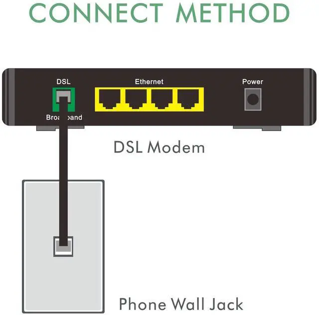 High speed RJ11 DSL cable for DSL modem / router, Cat5/Cat5e rated, twisted pairs reduce interference and cross-talk, overall length is 50 ft