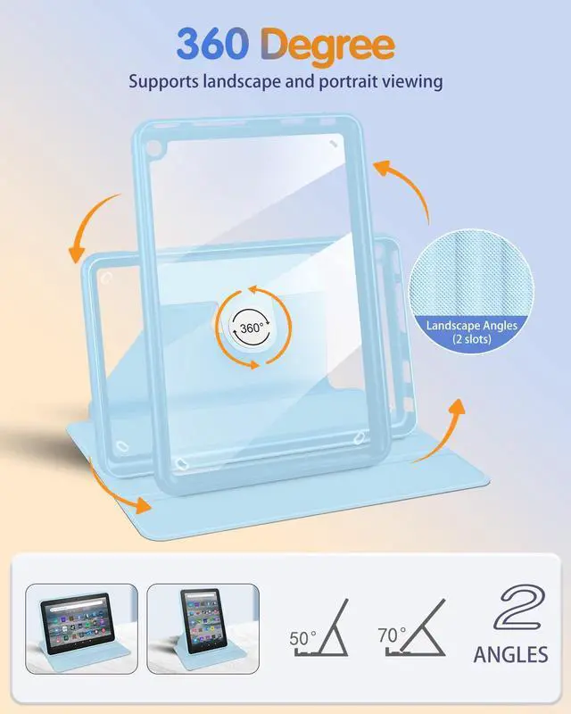 360deg Rotating Stand: This for Kindle Fire 7 case with an functional rotating stand design, supporting your devices to switch between landscape and portrait orientations for all-around viewing and use.