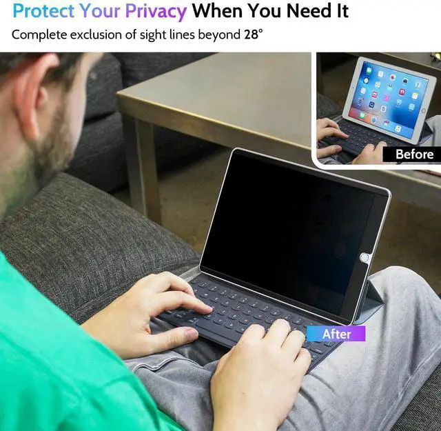 [(STUNNING INNOVATION)] Peslv, working hard for your satisfaction. Compared with the ordinary iPad private screen, Peslv iPad privacy screen protector has been upgraded in technology and material. This is reflected in the installation method, tactile sensitivity, clarity, durability, etc. You can install it in a second with no bubbles. Enjoy 28 deg true anti-peep effect while having a quality screen clarity and sensitive touch. Soft and tough will not shatter, durable for 3 years!