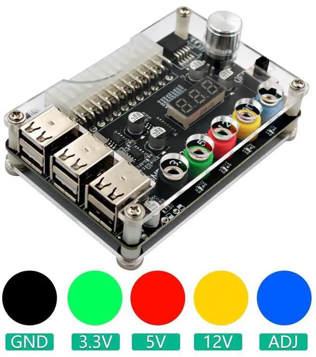 ATX Power Supply Breakout Board with Adjustable Voltage Knob and 6- Port USB 2.0,and QC 2.0/QC 3.0, 3A Maximum Output