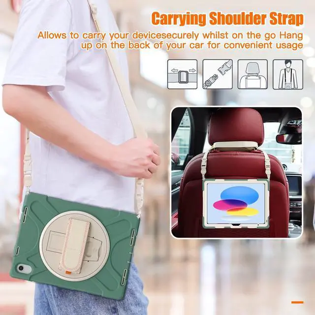 Adjustable Hand Strap & Portable Shoulder Strap & Rotating Stand: Provide the protection and convenience when you play or work with iPad. Hang it anywhere for your entertainment, makes you using iPad 10th Generation case easily. 360 Degrees rotating Kickstand provides convenient viewing, with soft strap, easy to use your 10th gen iPad in your outdoor travelling, working, gaming with kids.