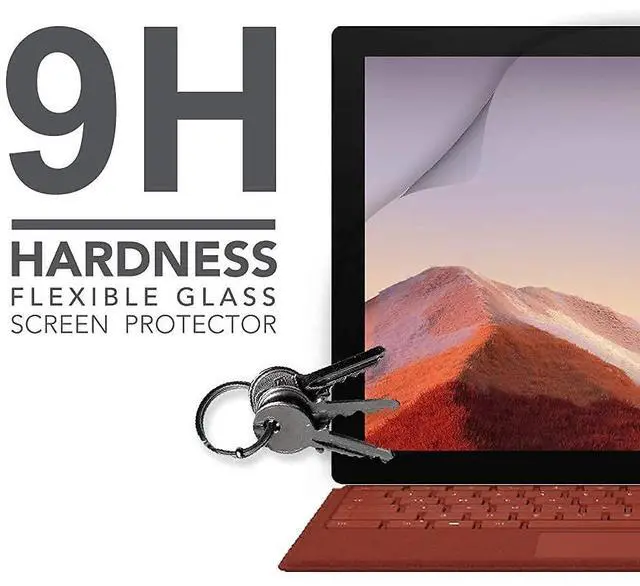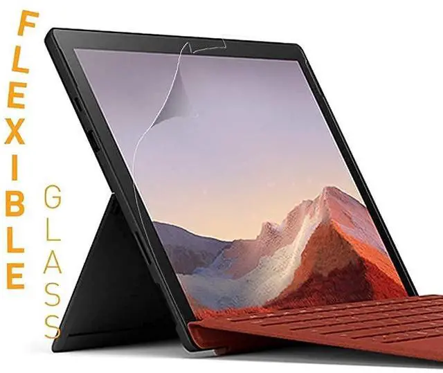 Compatible for Surface Pro 7. Advanced FLEXIBLE GLASS materials with ultra-thin and bendable as plastic; high definition & anti-fingerprint. 9H hardness giving toughest & high scratch resistant attribute to the durable top-grade materials, cover your screen surface completely, get away the scratch or damage from minimal fragments Glossy surface keeping clear and brightness from the screen, to preserving your visual experiences.