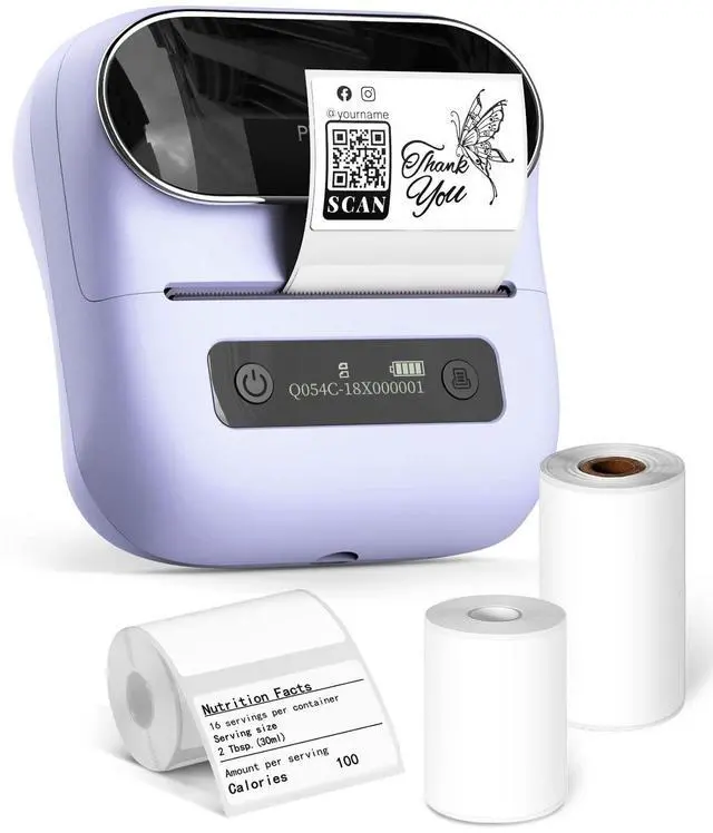 Thermal Label Printer- Never need the ink, toner, and ribbon again. This barcode label printer prints using thermal technology, meaning you only need to restock on labels, the thermal label maker come with 3 Rolls Labels(1 Roll 40x30mm label, 1 Roll 60x40mm label, 1 Roll 70x80mm label