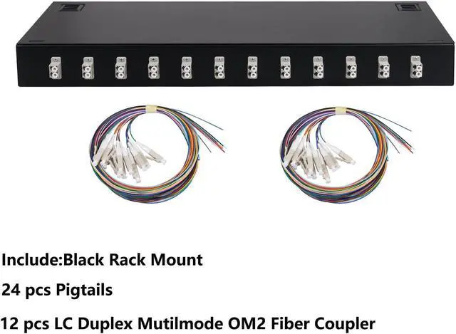 • Package IncludedBlack mount, 24 pcs pigtails, 12 pcs lc duplex multimode couplers.