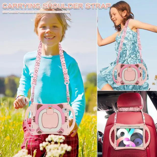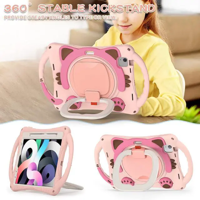 Full Body Protection: Has a cute cartoon cat style appearance patent design while providing full body protection prevent from drops, shocks, bumps, scratches and dirt. No worry your iPad would slip out of your kids' hands and break. Full access to all ports, buttons and cameras without removing the case.