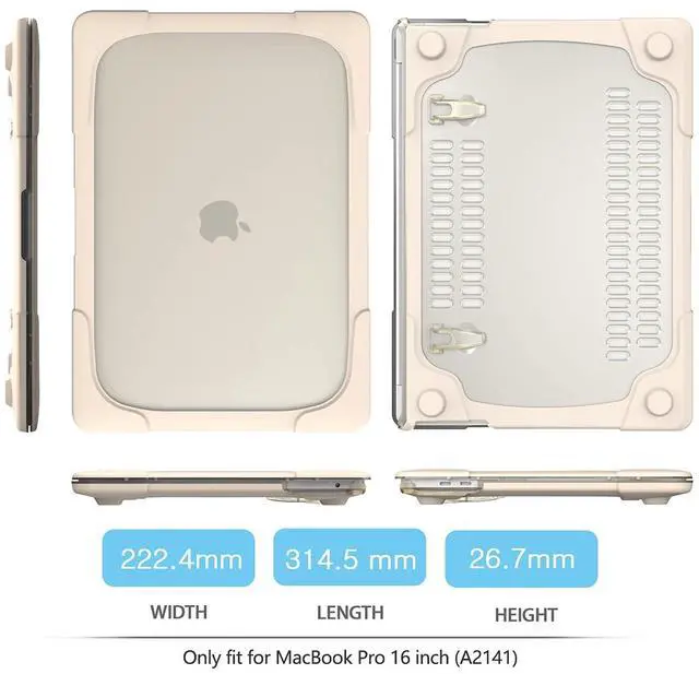 Attention: Not suitable for New MacBook Pro 16 2021 M1 Pro/Max Chip.Fully vented for safe heat disbursement; Easy access to all ports and features, you can plug your charger, cable or headset without removing the case.