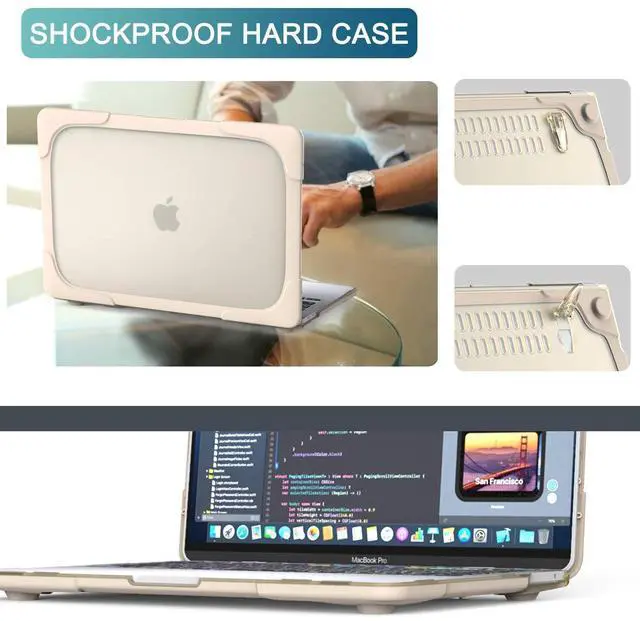 Engineered shock-absorbent beveled ridges design bumper heavy duty hard shell, provides full protection for your laptop against accidental scuffs, drops, and scratches. Fully vented for safe heat disbursement, fully access to all buttons and features.