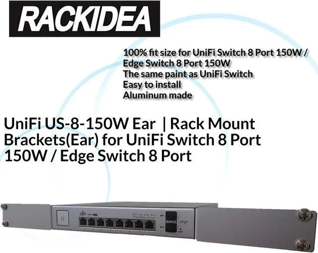 UniFi US-8-150W Ear - RACKIDEA | RI-UB8RMBA | Rack Mount Brackets(Ear) for UniFi Switch 8 Port 150W / Edge Switch 8 Port