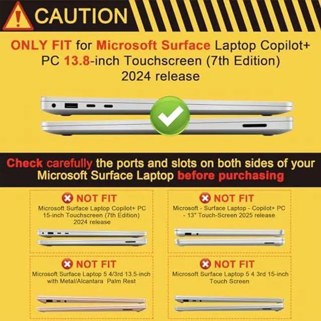 Case specificity model:Case Only fit for Microsoft Surface Laptop Copilot+ PC 13.8-inch Touchscreen (7th Edition) 2024 release,Model number:2036.Note: different models correspond to different case,not compatible with 13.5" and 15" Microfoft surface laptop