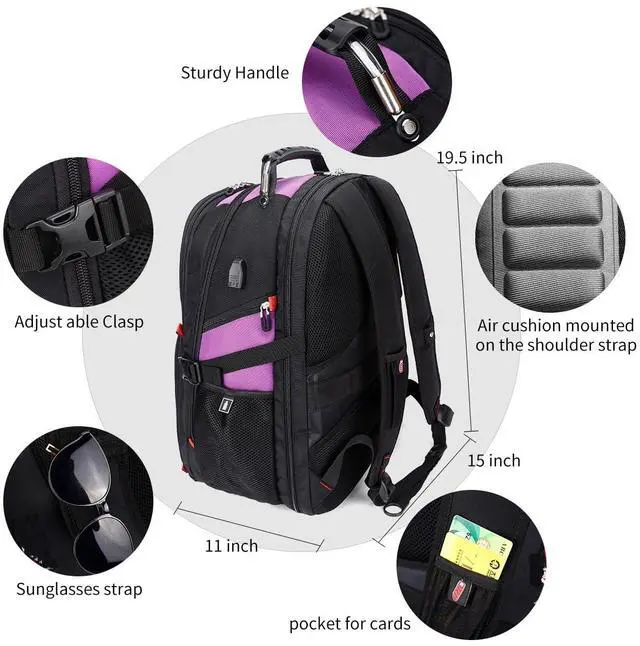 SHRRADOO Extra Large 50L Travel Laptop Backpack with USB Charging Port, College High School Backpack Airline Approved Business Work Bag Fit 17 Inch Laptops for Men Women,Purple