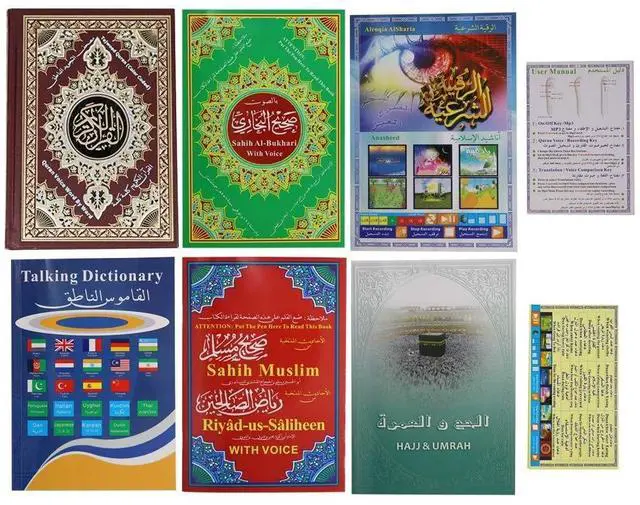 Quran pen - Very good gift at best price! Internal Li-Ion Rechargeable battery, long time playing, (it takes about 1.5 hs to be fully charged and 3.5 -4hs continuous playing, once fully charged then the light goes off, light in red means in charge) Intelligent, high tech way to learn Quran with Quran pen! Built-in speakers with loud and clear sound. Holy Quran Pen Word-by-word function, 5 quality learning books. The product comes with either Black or White cord and with either gold or Black book cover.