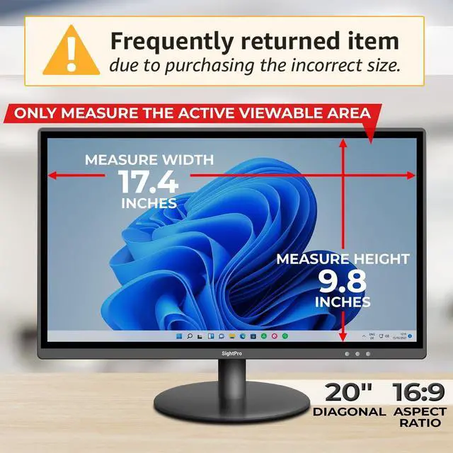 Privacy Filter Dimensions- Width: 17 7/16" (443 mm), Height: 9 13/16" (250 mm), Diagonal: 20" (508 mm) - SightPro Blackout Privacy Screen Filter is engineered to be compatible with HP, Dell, Samsung, Lenovo, LG, Acer, ASUS, ViewSonic, and other monitor brands. Please verify your computer screen's width and height measurements before ordering. It's not recommended to make your selection based solely on your computer screen's diagonal size. Always double check your measurements.