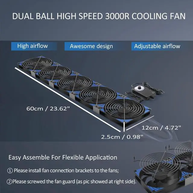 FLEXIBLE ARRANGEMENT: Each set fans with screws,fan connection brackets,metal guards,cable ties,you can easily assemble it for flexible length and width.
