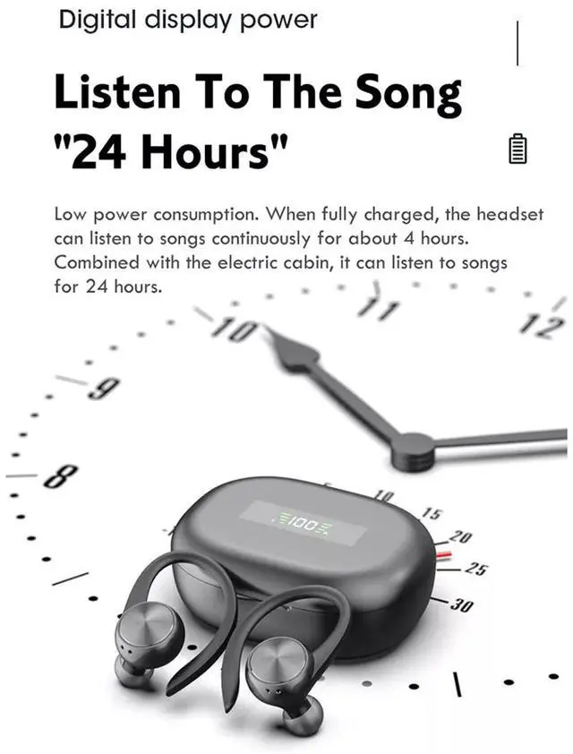 4. A fully charged wireless earbuds lasts for 4 hours, and the 500mah battery charging case lasts for 24 hours.