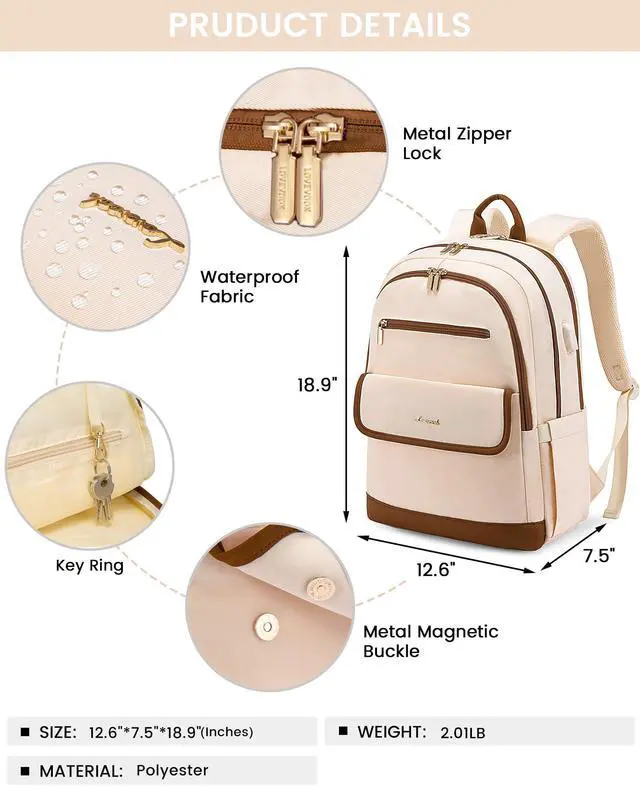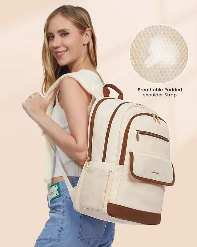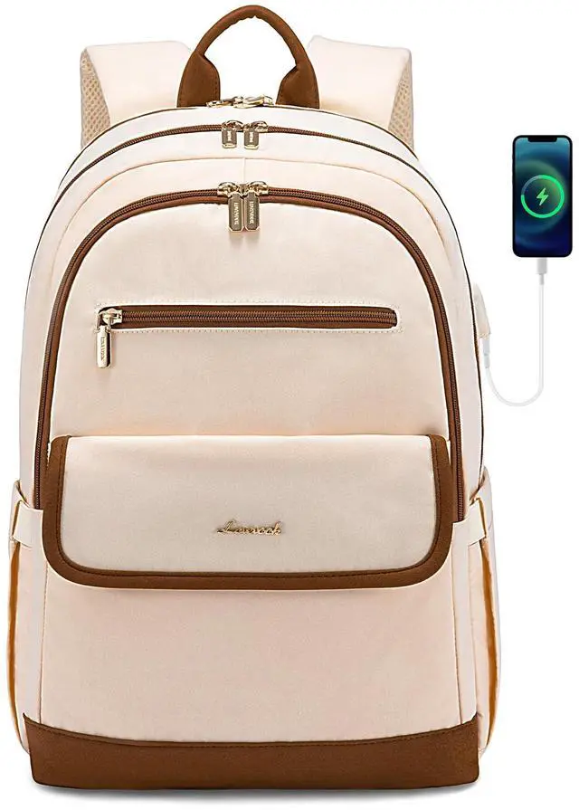 LOVEVOOK Laptop Backpack for Women,17 Inch Fashion Travel Backpack,Large Capacity Backpack Purse with USB,Water-resistant fits College Work Business Travel Beige