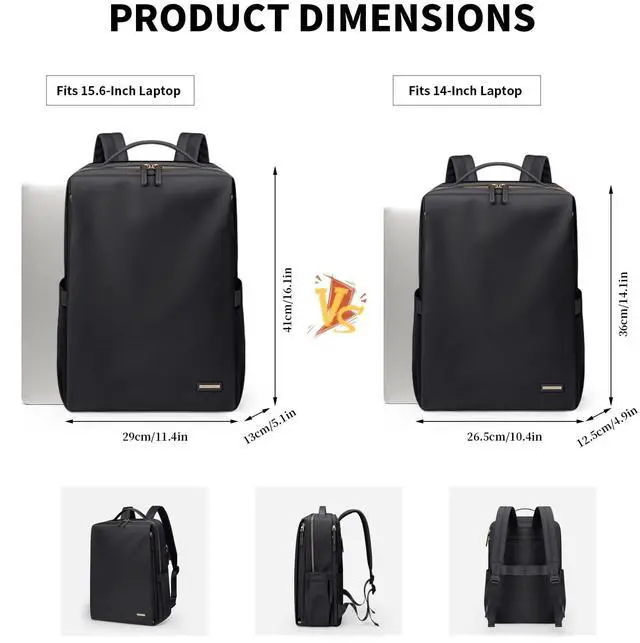 Roomy & Organized- The backpack's large capacity features a separate laptop compartment that can fit up to a 14" laptop, a spacious main compartment with 2 slip pockets and a zipper pocket. Outer with 2 vertical zipper pocket, 1 back anti-theft pocket, as well as a 2 side pockets and a luggage strap for added convenience.