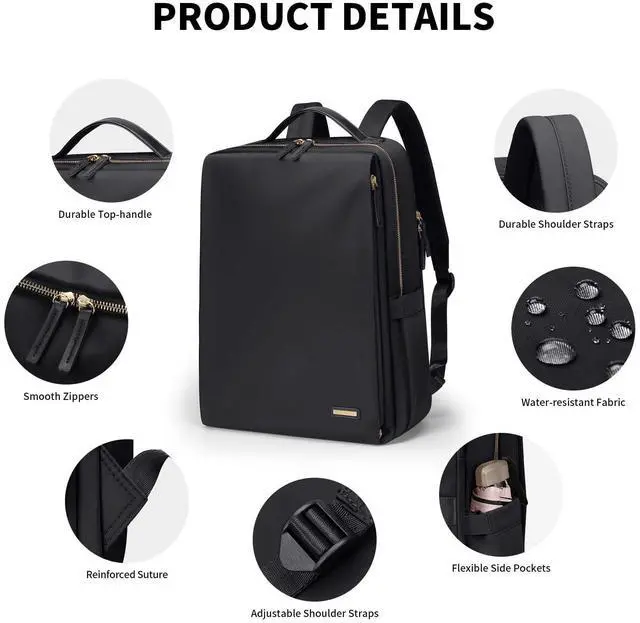 GOLF SUPAGS Stylish Laptop Backpack for Women Airline Approved Perfect for Work College and Travel Multi-Functional Casual Daypack Fits 14 Inch Notebook (Black)